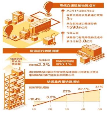 推进上下游产业链协同复工复产,物流是关键。疫情使一些物流企业生产经营受到影响,社会物流成本出现阶段性上升。针对物流业的难点、痛点,国家推出了多项政策措施,各地积极推进落实减税降费,减轻企业负担;铁路、港口等主动承担社会责任,推出减免收费、升级服务等措施,改善管理、优化流程,让物流业畅通运转的脚步加快。