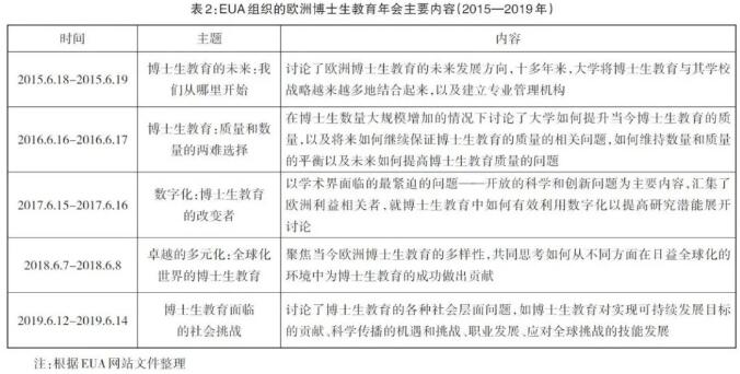 欧洲大学协会协助欧洲博士生教育机构制定和实施可提高博士生水平的政策和计划,充分发挥其三项智库职能。