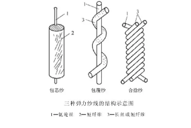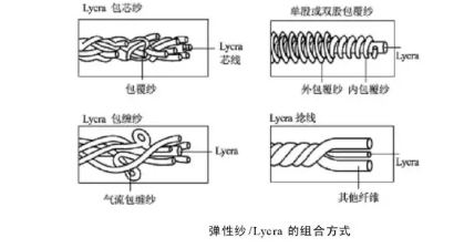 氨纶在纺织品中通常以裸丝、包芯纱、包覆纱、合捻纱四种形式存在。