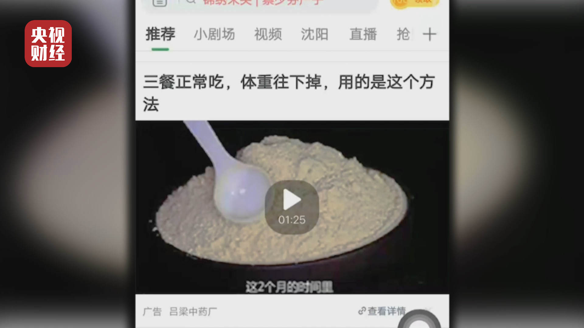 在“趣头条”,记者看到这样一条广告标题:“三餐正常吃,体重往下掉,用的是这个方法”,打开链接,映入眼帘的是一条视频。