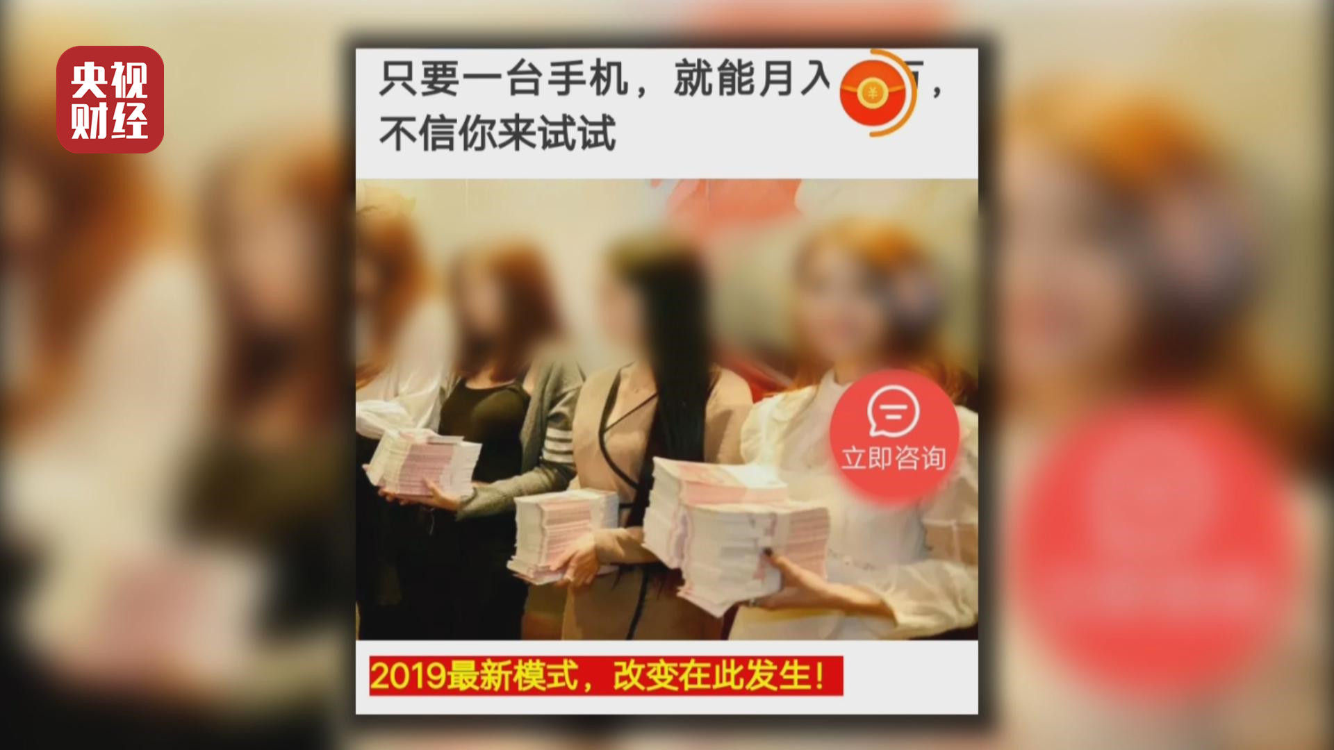 视频下方是一长篇图文。手捧巨额现金的照片、成功案例、已报名参加人员列表、精彩留言,不停跳出一个微信号。