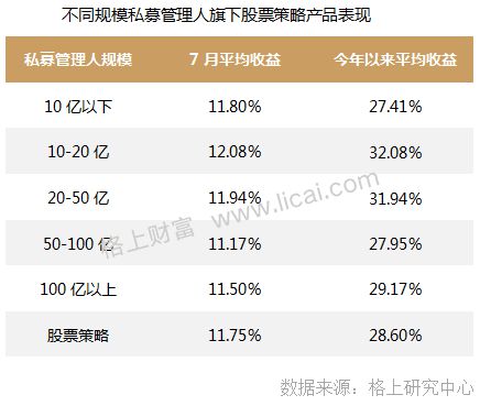格上研究中心数据显示,股票策略私募基金今年7月的平均收益为11.75%,领跑各大策略,而股票策略私募基金今年以来的平均收益更是达到28.60%。百亿私募里面,主动权益策略中领先的如檀真投资、彤源投资、高毅资产等,量化策略中领先的如宁波幻方量化、明汯投资、灵均投资等。
