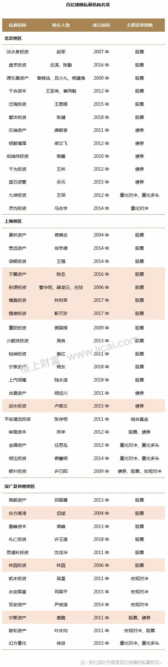 还有,新晋百亿私募煜德投资,其掌门人靳天珍曾是华商基金总助、机构投资部总经理;于翼资产采用自上而下以及自下而上相结合的方式,精选估值合理且成长性突出的优质公司来构造核心组合;宁聚投资是以量化策略起家的,迎水投资则是参加科创板打新“大户”。