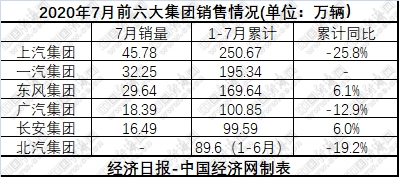 据中国汽车工业协会统计分析,2020年7月,汽车销量排名前十位的企业依次是:上汽、一汽、东风、广汽、长安、北汽、吉利、华晨、长城和奇瑞。与上月相比,奇瑞销量增速超过20%,华晨略增,其他企业均呈下降。7月,上述十家企业共销售190.14万辆,占汽车销售总量的90.04%。