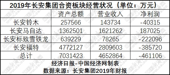 数据显示,2019年,长安集团除去长安马自达有18.70亿元的盈利外,长安铃木、长安PSA、长安福特分别亏损4.03亿元、22.21亿元,以及38.57亿元,合资板块累计亏损达46.09亿元。合资板块的陨落,直接拖累了集团的业绩,加之今年初长安自主板块的滑落,导致一度跌落至大集团排名第六位。