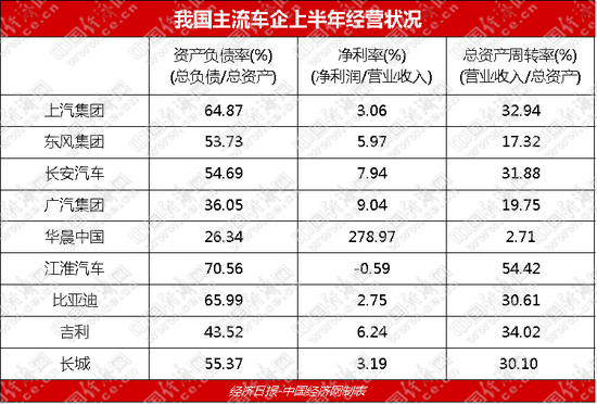 上汽体量最大、江淮触碰警戒线、比亚迪现金流突出