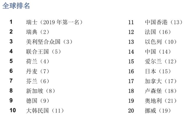2020年9月2日,世界知识产权组织(WIPO)在日内瓦发布了2020年全球创新指数(Global Innovation Index 2019,GII)。