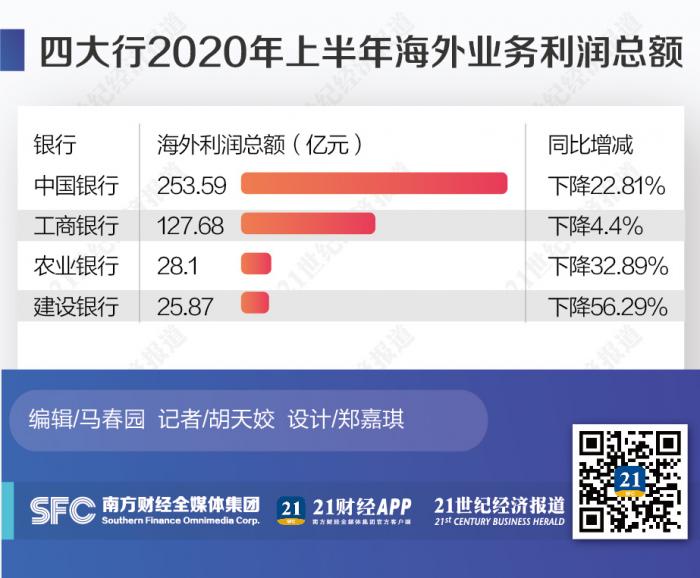 2020年上半年,上市银行净利润集体下滑,海外业务也受到较大冲击。