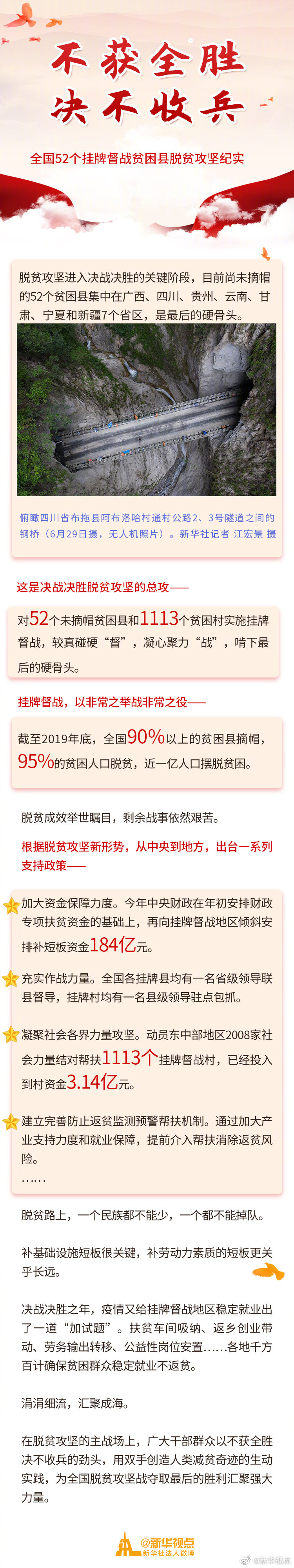 对52个未摘帽贫困县和1113个贫困村实施挂牌督战,较真碰硬“督”,凝心聚力“战”,啃下最后的硬骨头。