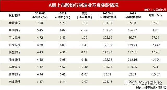 "制造业是银行对公不良贷款的主要来源,但是上半年,银行对制造业公司贷款的不良率平均值却在下降。"民生证券郭其伟团队指出,不良率不升反降可能是因为银行上半年加大了对这一行的贷款投放力度,重点支持新基建和实体经济,进而稀释了不良率指标,同时在二季度,银行对制造业的不良贷款做了一定程度的批量核销。