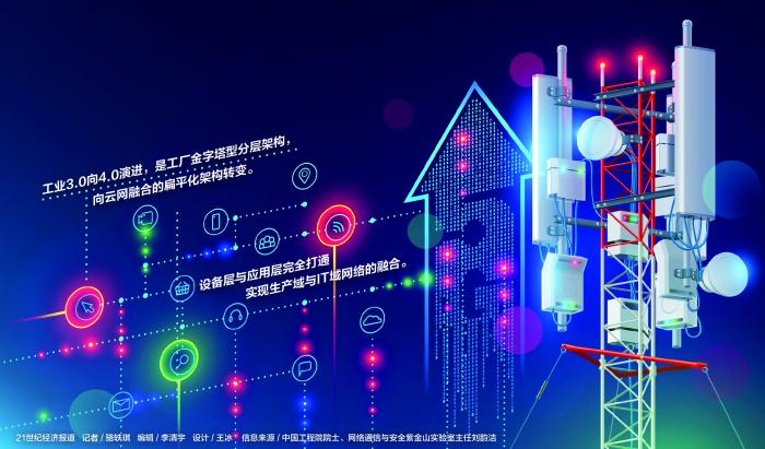 而工业3.0向4.0演进的核心,表现为工厂金字塔形的独立网络分层架构,向云网融合的扁平化架构转变。设备层与应用层完全打通,并通过各项技术保障设备与平台之间数据传输的时延要求,从而实现生产域网络与IT域网络的融合。