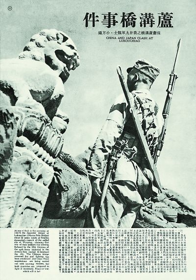 署名“小方”的图文报道《卢沟桥事件》刊载于1937年7月号的《良友》杂志。