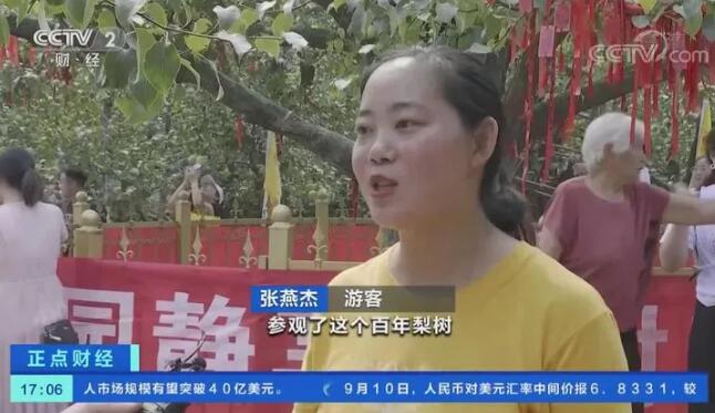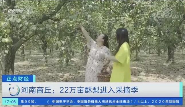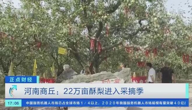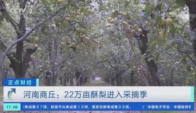 据了解,今年对酥梨采摘时间将持续到10月上旬,宁陵县是金顶谢花酥梨的故乡,目前,酥梨种植面积22万亩,年产值达到10亿元,带动20余万人脱贫致富。从2004年开始,当地以梨为媒,每年都要举办梨花节、采摘节进行推介,大大提高了宁陵酥梨的知名度,丰收时节的果园已成为周边市民休闲游玩的好去处。