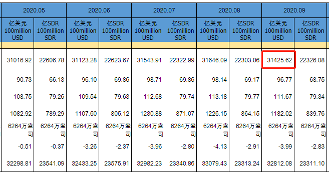 国家外汇管理局10月7日公布了最新外汇储备规模数据,截至2020年9月末,我国外汇储备规模为31426亿美元,较8月末下降220亿美元,降幅为0.7%。黄金储备持稳于6264万盎司。