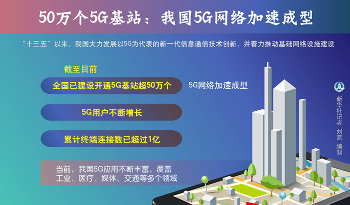 北京10月6日电(记者高亢)“十三五”以来,我国大力发展以5G为代表的新一代信息通信技术创新,并着力推动基础网络设施建设。截至目前,全国已建设开通5G基站超50万个,5G网络加速成型。