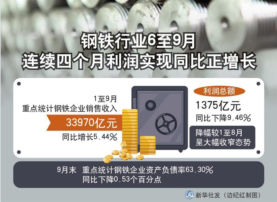 北京,2020年10月26日 图表:钢铁行业6至9月连续四个月利润实现同比正增长 新华社发 边纪红 制图