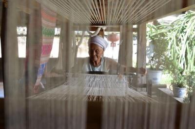 整董镇正在织布的傣族老人