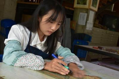 正在进行绝版木刻培训的学员