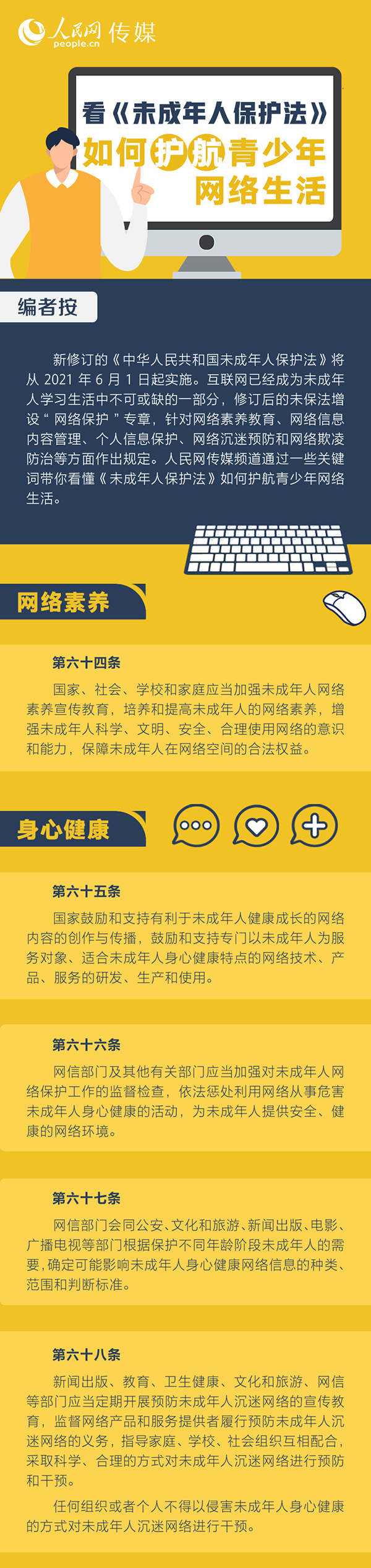 编者按:新修订的《中华人民共和国未成年人保护法》指出“应当加强未成年人网络素养宣传教育,培养和提高未成年人的网络素养”,还特别提醒“未成年人的父母或者其他监护人应当提高网络素养,规范自身使用网络的行为,加强对未成年人使用网络行为的引导和监督。”