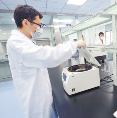 浙江嘉善县西塘镇传统食物创意园内的工作人员对食物进行生物安全检测。胡凌翔摄(人民视觉)