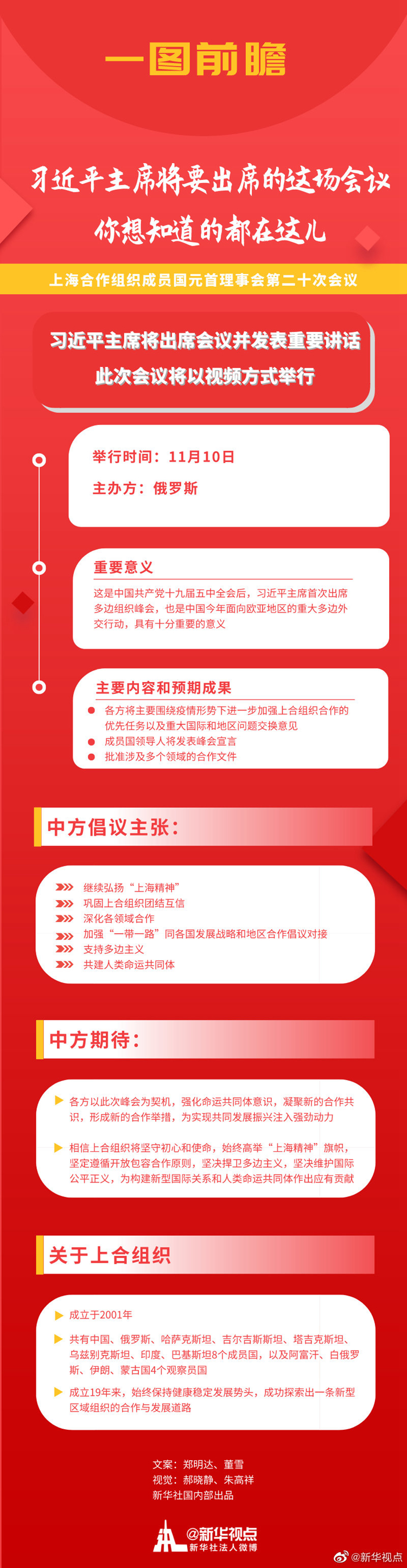 国家主席习近平将于11月10日在北京出席上海合作组织成员国元首理事会第二十次会议并发表重要讲话。此次会议将以视频方式举行。习近平主席出席此次会议有何重要意义?请看下图↓