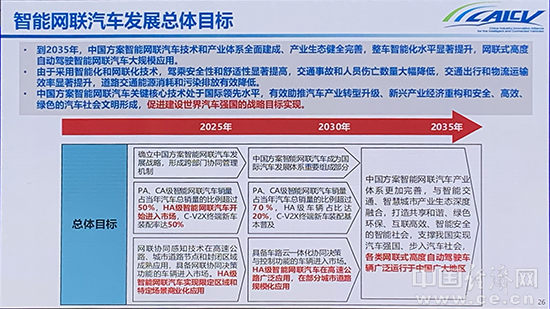 总体来看,《路线图2.0》共有三个关键时间节点:到2025年,PA(部分自动驾驶)、CA(有条件自动驾驶)级智能网联汽车市场份额超过50%,HA(高度自动驾驶)级智能网联汽车实现限定区域和特定场景商业化应用;到2030年,PA、CA级智能网联汽车市场份额超过70%,HA级智能网联汽车市场份额达到20%,并在高速公路广泛应用、在部分城市道路规模化应用;到2035年,中国方案智能网联汽车技术和产业体系全面建成、产业生态健全完善,整车智能化水平显著提升,HA级智能网联汽车大规模应用。
