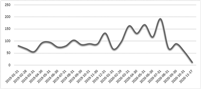 月度基金发行数量统计(截至11月17日)数据来源:同花顺