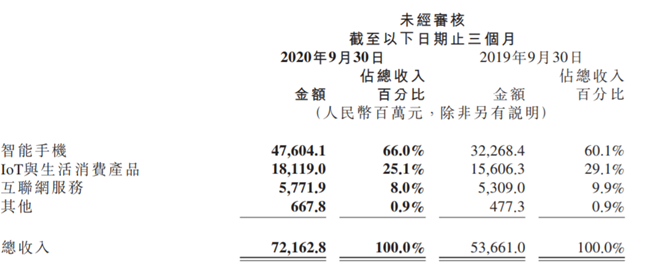 IoT与生活消费产品部分本季度收入达到人民币181亿元,同比增长16.1%。互联网服务部分该季度收入达到人民币58亿元,同比增长8.7%。其他收入由2019年第三季度的人民币4.773亿元增加39.9%至6.678亿元,主要是由于部分IoT产品的安装服务收入的增长。
