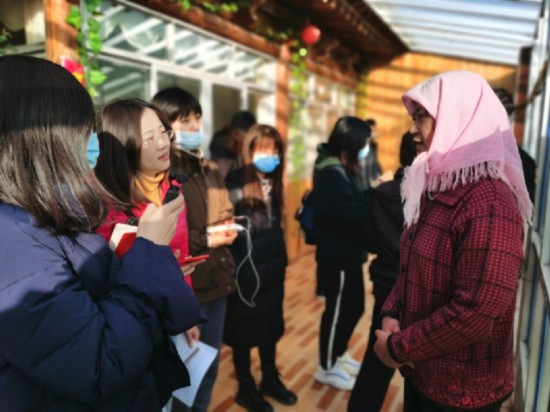 11月8日,青海行采访团记者在采访青海大通回族土族自治县东至沟村脱贫致富村民代表马得莲。