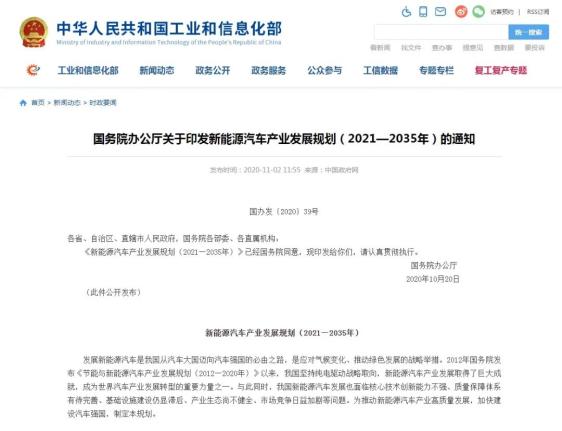 近日,国务院办公厅印发了《新能源汽车产业发展规划(2021—2035年)》,提出到2025年,新能源汽车新车销售量达到汽车新车销售总量的20%左右,纯电动汽车也成为新销售车辆的主流,公共领域用车将全面电动化。