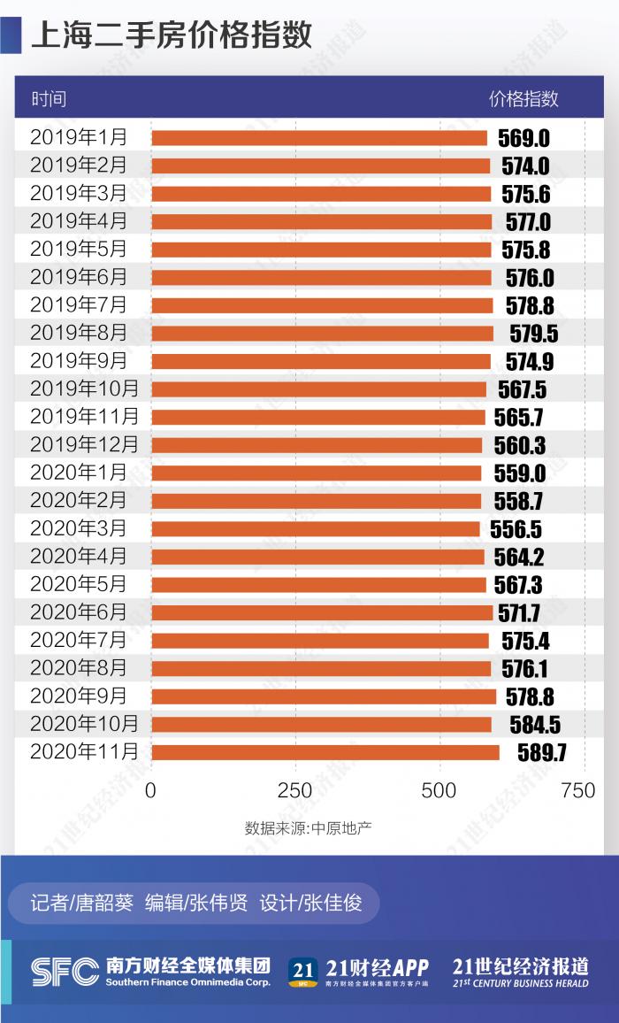 楼市火爆的背后,是上海商品房新增供应的紧缺。中指院数据显示,2020年1-11月,上海市商品住宅(不含保障性住房)新增供应593.74万平方米,同比下降11.7%。2020年11月,上海市商品住宅(不含保障性住房)新增供应15.98万平方米,环比下降76.8%,同比下降67%。11月,上海市商品住宅(不含保障性住房)可售面积675.09万平方米,环比下降5.3%,按照近6个月平均销售情况,出清周期为7.63个月。