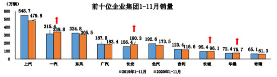 值得一提的是,1-11月,重点企业集团市场集中度继续小幅下降。数据显示,1-11月,汽车销量排名前十位的企业集团销量合计为2012.1万辆,同比下降3.3%,占汽车销售总量的89.5%,低于上年同期0.4个百分点。