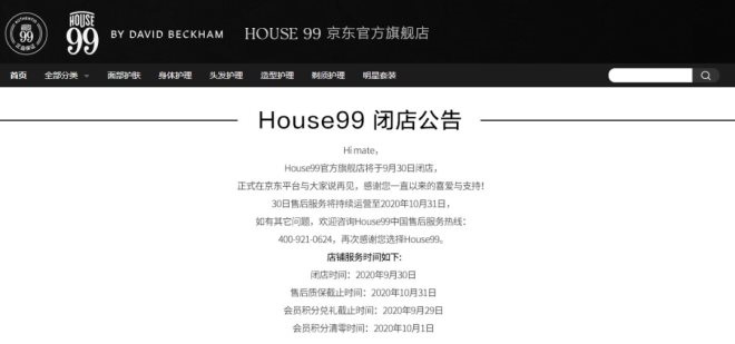 可惜好景不长,HOUSE 99宣布于2020年9月30日关闭品牌京东旗舰店。目前天猫、京东上均已搜索不到HOUSE 99官方店铺,仅有个别淘宝C店在销售少量HOUSE 99产品。与此同时,HOUSE 99微信公众号、微博账号也早在几个月前停更。