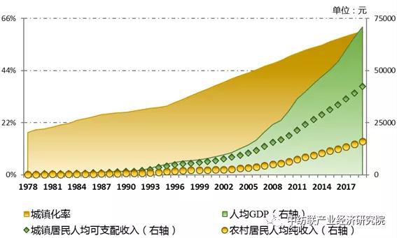 上世纪80年代末期,我国全面完成解决人民温饱问题的历史任务,踏上小康社会建设道路。90年代,伴随着改革开放成效累积,国民经济实现稳健发展,人民生活水平稳步提高,国内市场需求也开始从数量满足转向品质提升,解决人民日益增长的物质文化需要与生产力发展水平之间的矛盾成为核心发展导向。1990年到2000年,我国人均GDP从1663元增加到7942元,城镇化率从26.4%提高到36.2%,城乡加权人均可支配收入从904元增加到3722元。