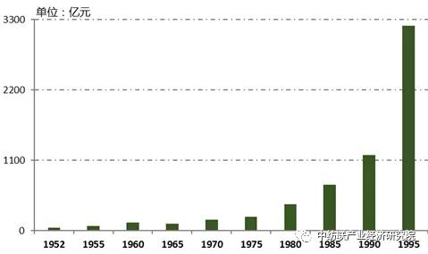 纺织行业从上世纪50年代开始大力建设棉纺织基地,强化自主装备配套,积极发展粘胶(时称人造棉)、腈纶(时称人造羊毛)等化纤原料,加快发展针织工业,丰富衣料选择。特别是70年代,我国引进技术兴建四大合成纤维基地,成为纺织行业供给能力的突破性转折。我国化纤产量1957年仅有200吨,1980年增加到29万吨,1990年达到165万吨;纺织纤维加工总量从建国初期几十万吨增加到1978年276万吨,1990年达到630万吨。