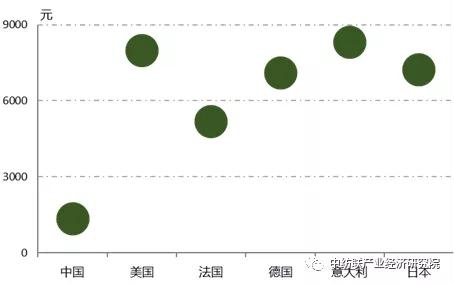 图5: 2019年我国及部分发达国家人均衣着消费支出