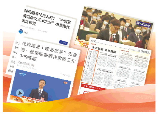 三天前,张金海首次登上十三届全国人大四次会议举行的“代表通道”,接受中央广播电视总台央视记者提问,讲述了自己用技术成果推动着环卫事业高质量发展的故事。这场“通道首秀”吸引了央视《新闻联播》、人民日报、新华社、经济日报等各大中央媒体的关注,让张金海成为“流量担当”,登上广大网友的“热搜榜”。