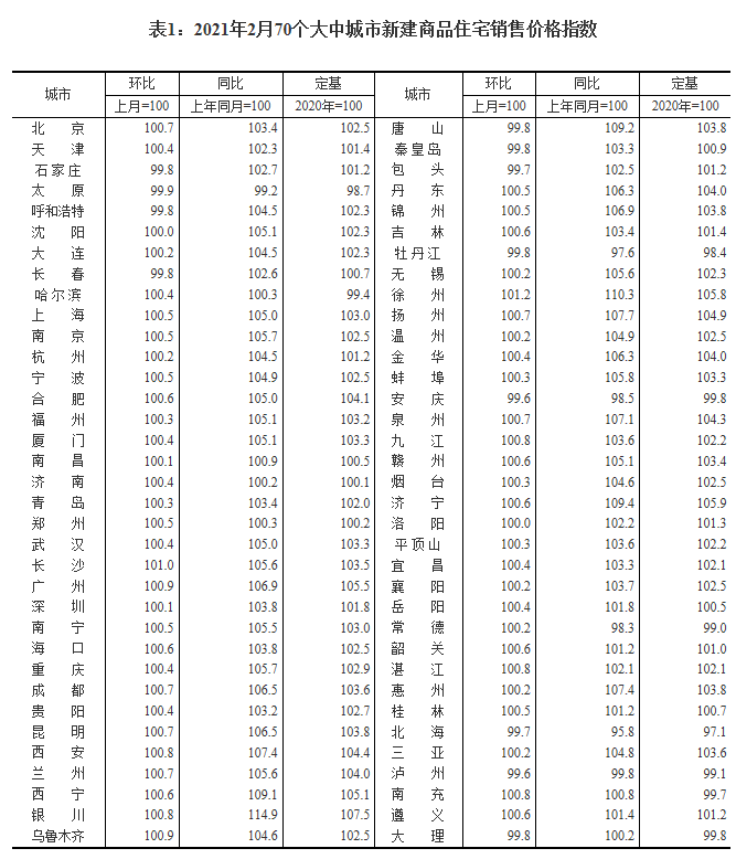 同比来看,主要受上年同期基数相对较低影响,各线城市商品住宅销售价格同比涨幅均有所扩大。据测算,2月份,一线城市新建商品住宅和二手住宅销售价格同比分别上涨4.8%和10.8%,涨幅比上月分别扩大0.6和1.2个百分点;二线城市新建商品住宅和二手住宅销售价格同比分别上涨4.5%和2.9%,涨幅比上月均扩大0.4个百分点;三线城市新建商品住宅和二手住宅销售价格同比分别上涨3.6%和1.9%,涨幅比上月分别扩大0.3和0.4个百分点。