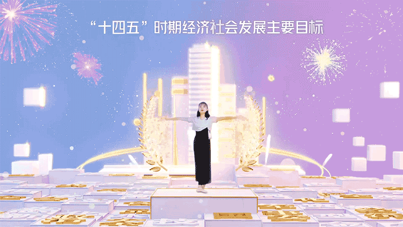 两会报道以来,新华网紧扣两会主题、抓住社会关注热点,强化技术创新应用、加快前沿领域探索,着力打造了多款契合年轻网民喜好,技术先进、样态新颖,可看、可听、可玩、可感的创新型融媒体产品,在网上形成广泛传播,产生强烈社会反响,获得广大网民点赞。 “MR+MOCO”,人“数”共舞、开创先河 3月10日,新华网推出短视频《【创意MR艺术舞台秀】舞动“十四五”》。该片没有旁白,只有舞蹈演员和数据在音乐声中翩翩起舞。通过运用MR实时渲染虚拟引擎、动态捕捉、motion control运动控制系统、分身克隆等技术,将“十三五”成就和“十四五”规划内容在舞蹈演员手中、脚下诞生、上扬、发光和跳动。 同时,结合舞台美术和影视动画,开创了数字视觉呈现的先河,给网民带来全新的极致观看体验。产品视觉效果丰富,有大胆的用色和风格变化,也有神奇的透视空间和转场效果,多种场景风格更好地体现了“十四五”题材中的多个领域和主题,针对内容定制场景主题,抽象、科幻、国风、卡通等风格变化,将“十四五”规划的重点通过场景的“情绪”传达出来。 受众在观看短片时,每一幅图每一个场景既有逻辑顺序,又是不同的艺术风格,出人意料的特效和动画陆续出现,高密度、高质量画面与信息让观众在整个观看过程直呼“过瘾十足”“眼睛都不够用了”“必须N刷!”。 产品播发后在今日头条、腾讯新闻、新浪新闻、B站、知乎等传播渠道重点推荐展示,播发2小时全渠道总访问量突破1500万。