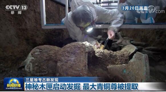 三星堆遗址考古器物层深度发掘工作正在进行,考古人员在6号坑发现了一个神秘木匣并已开始初步发掘。同时,此次考古发现的最大体量的青铜大口尊今天(3月21日)也被提取,关于象牙的古DNA研究也将同步展开。