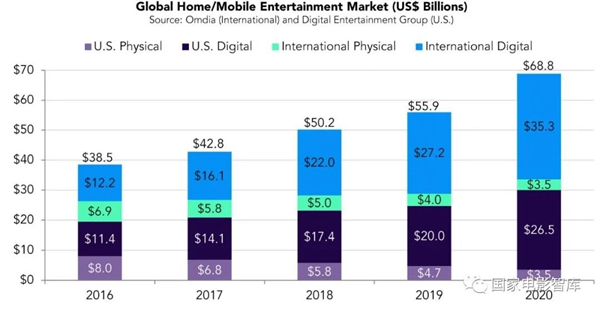 全球家庭/移动娱乐市场的全球收入达到了688亿美元,同比增长23%。