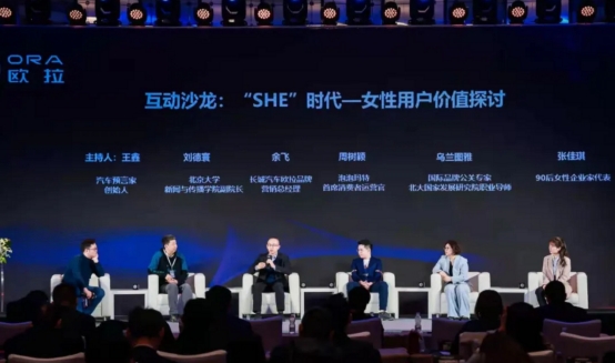女性一直是消费领域中最活跃的群体,在互联网时代,“她经济”正在打破固有的性别局限,逐渐成为存量竞争下新的增长极。过去以男性为主力消费群体的汽车行业,近年来的风向也在发生改变。“她经济”时代,如何挖掘女性用户的价值?围绕这一话题,欧拉品牌营销总经理余飞、北京大学新闻与传播学院副院长刘德寰、泡泡玛特首席消费者运营官周树颖、国际品牌公关专家&北大国家发展研究院职业导师乌兰图雅、90后女性企业家代表张佳琪,以及主持人《汽车预言家》创始人王鑫展开了圆桌对话。