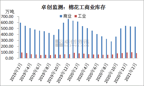从行业需求端来看,卓创资讯分析师刘杰告诉第一财经记者,当前纺织产业链仍处于疫情后需求边际向好阶段,叠加“金三银四”传统旺季支撑,纺织产业链库存低位,棉纺企业开工多满负荷,棉花消费量得到保证。