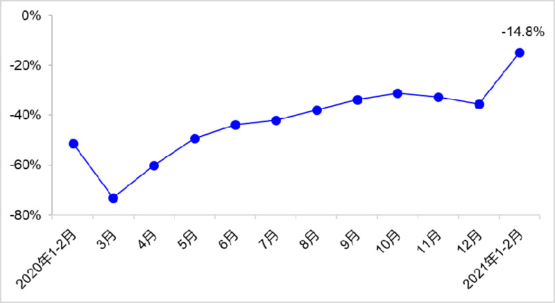 1—2月,完成营业性客运量12.4亿人,比2020年同期、2019年同期分别下降14.8%和58.6%,其中公路营业性客运量比2020年同期下降19.2%,水路客运量比2020年同期增长20.7%。