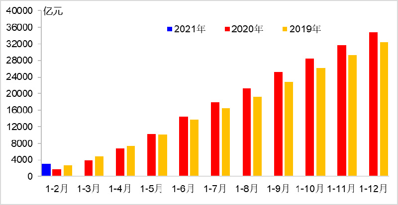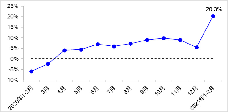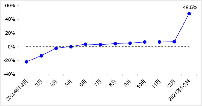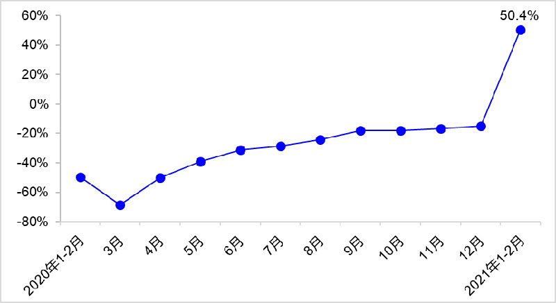 1—2月,完成货运量67.7亿吨,比2020年同期、2019年同期分别增长48.5%和16.0%,其中公路货运量比2020年同期增长63.8%,水路货运量比2020年同期增长25.4%。