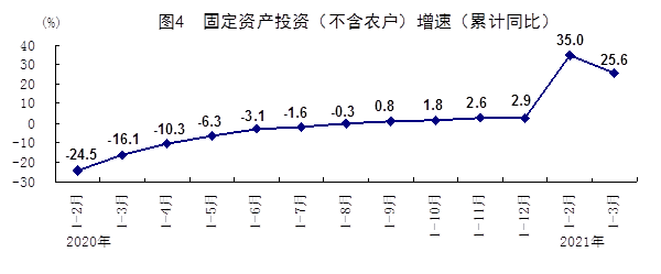 一季度,全国固定资产投资(不含农户)95994亿元,同比增长25.6%,环比增长2.06%;两年平均增长2.9%。其中3月份固定资产投资(不含农户)比上月环比增长1.51%。分领域看,一季度基础设施投资同比增长29.7%,两年平均增长2.3%;制造业投资同比增长29.8%,两年平均下降2.0%;房地产开发投资同比增长25.6%,两年平均增长7.6%。全国商品房销售面积36007万平方米,同比增长63.8%,两年平均增长9.9%;商品房销售额38378亿元,同比增长88.5%,两年平均增长19.1%。分产业看,第一产业投资同比增长45.9%,两年平均增长14.8%;第二产业投资同比增长27.8%,两年平均下降0.3%;第三产业投资同比增长24.1%,两年平均增长4.0%。民间投资同比增长26.0%,两年平均增长1.7%。高技术产业投资同比增长37.3%,两年平均增长9.9%;其中高技术制造业和高技术服务业投资同比分别增长41.6%、28.6%,两年平均分别增长10.7%、8.2%。高技术制造业中,医疗仪器设备及仪器仪表制造业、计算机及办公设备制造业投资同比分别增长50.0%、49.5%,两年平均分别增长9.1%、24.2%;高技术服务业中,检验检测服务业、研发设计服务业投资同比分别增长55.7%、48.2%,两年平均分别增长14.8%、21.5%。社会领域投资同比增长31.7%,两年平均增长9.6%;其中卫生、教育投资同比分别增长50.9%、27.0%,两年平均分别增长22.3%、10.4%。