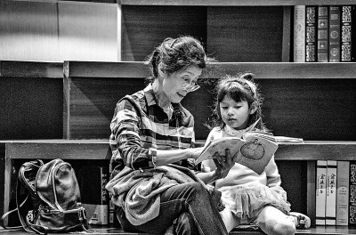 在贵州贵阳市一家书店内,小朋友在亲属的陪伴下读书。新华社发