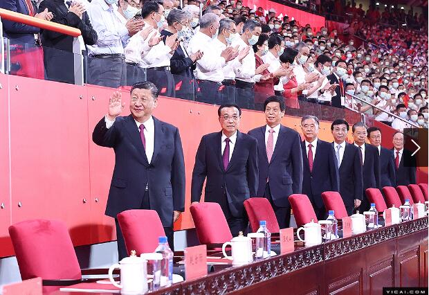 6月28日晚,庆祝中国共产党成立100周年文艺演出《伟大征程》在国家体育场盛大举行。习近平、李克强、栗战书、汪洋、王沪宁、赵乐际、韩正、王岐山等党和国家领导人,同约2万名观众一起观看演出。新华社记者 鞠鹏 摄