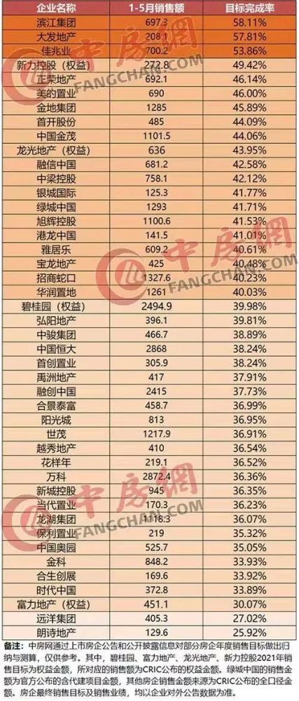 前段时间,各大开发商在公布了今年1-5月销售业绩的同时,也公布了全年销售目标完成情况。