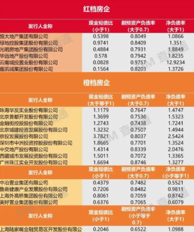 通过一些机构的统计,我们看到全国某些十强开发商,“三道红线”指数依然鲜红。